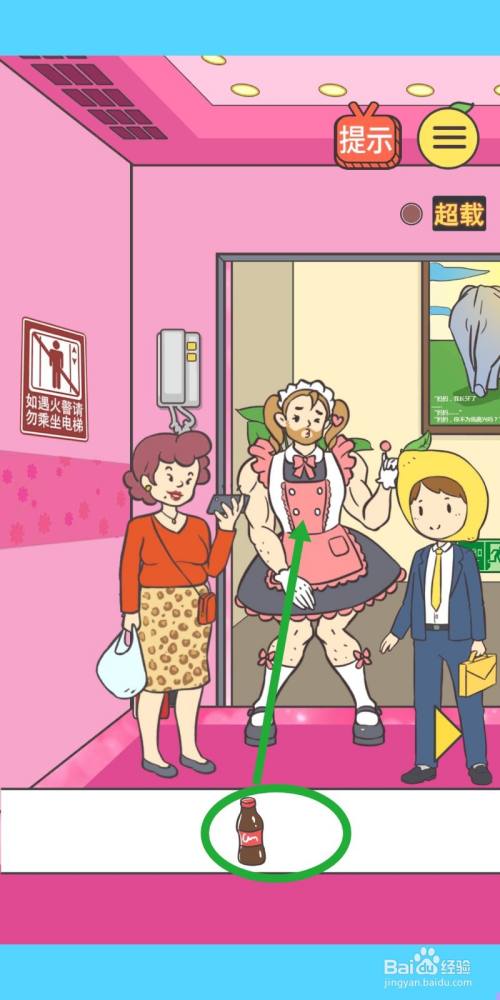 装萝莉的大叔被可乐里的气流喷出电梯,游戏过关。