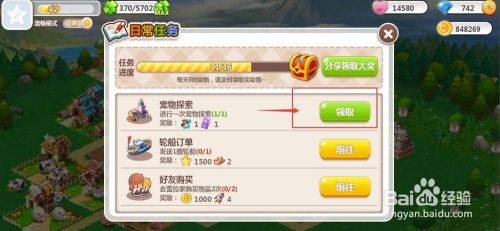 我们就当作功地完当作了宠物摸索使命,点击领取获得响应的奖励。