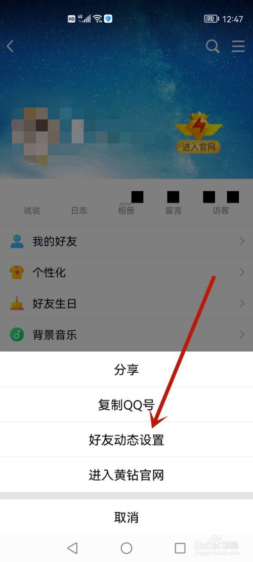 在弹出来的信息中,点击【老友动态设置】。