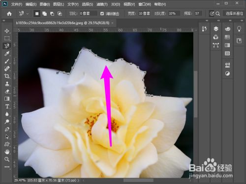 可以看到图片上有蚂蚁线,选区建立完当作,磁性套索东西也就遏制了。