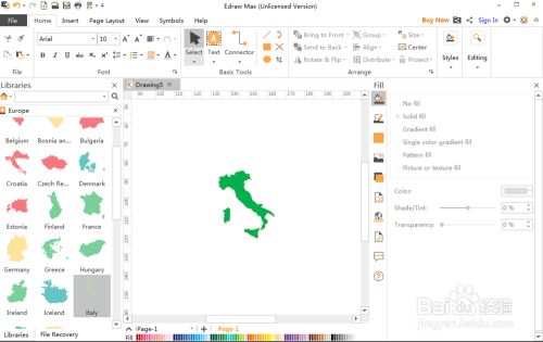 我们就在Edraw Max中建立好了一个意大利地图。