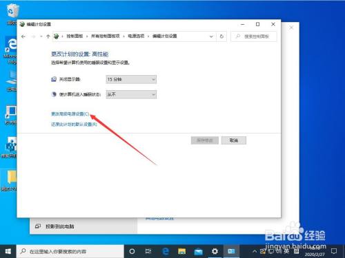 在编纂打算设置页面中打开“更改高级电源设置”选项;