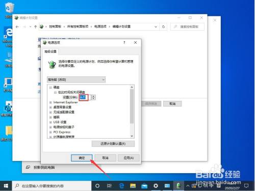 在新窗口内将此时候后封闭硬盘更改为“从不”,并按下“确定”按钮即可。