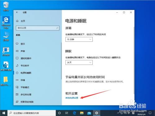 滑动右侧窗口,找到“其他电源设置”选项,并将之打开;