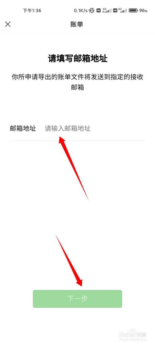 在地址栏中填写邮箱地址,点击下一步的选项即可导出到邮箱,进入邮箱即可下载流水账单。