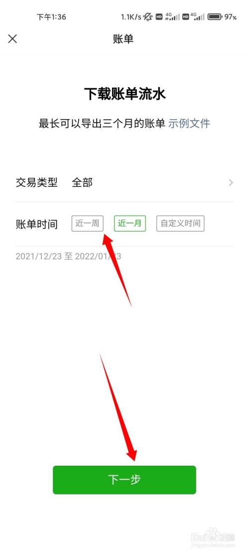 别离选择买卖类型和账单时候,点击下一步的选项。