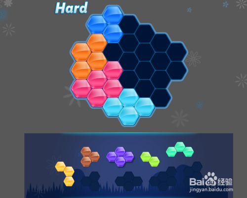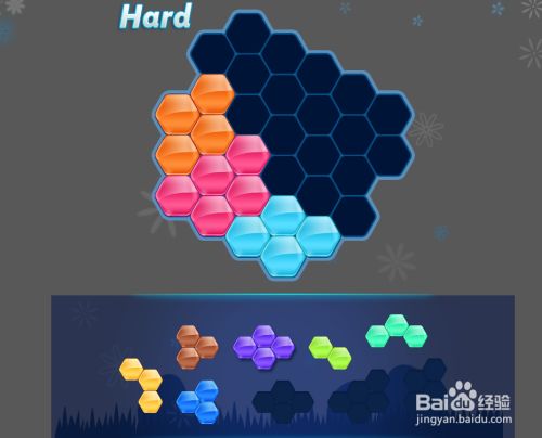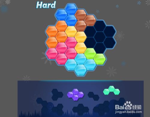 最后在紫色六边形的上面,放上深绿色六边形,如图,这样就顺遂通关了。
