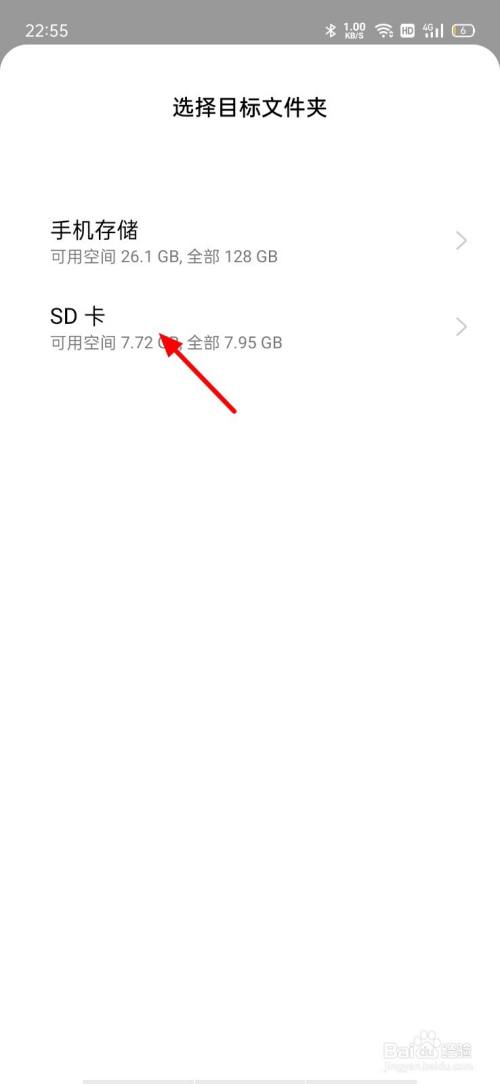 在选择方针文件夹页面,点击SD卡。
