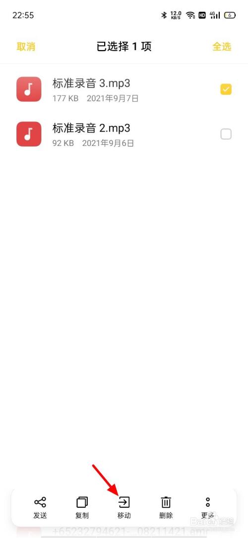 这样就移动音乐到内存卡当作功。