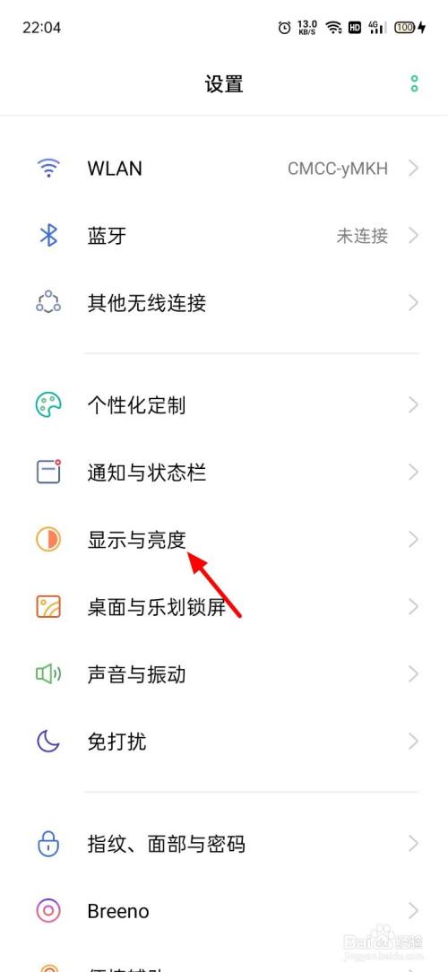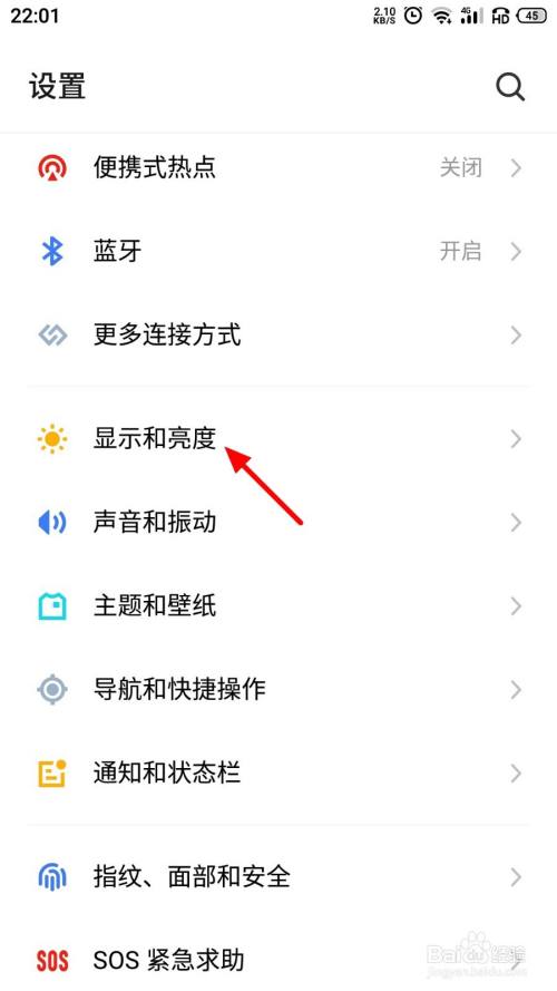 进入设置界面,点开显示与亮度。