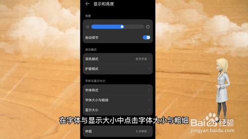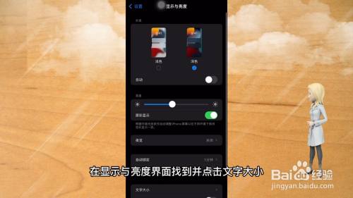 在显示与亮度界面找到并点击文字大小。