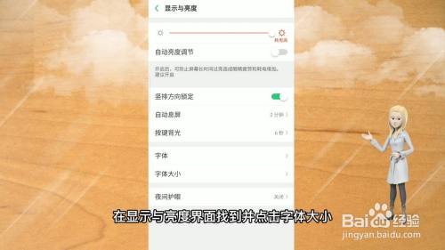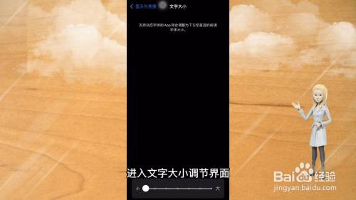 进入文字大小调节界面,拉动下方按钮调节大小即可。