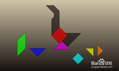 然后在红色正方形的左上侧,放上平行四边形挨着,如图。