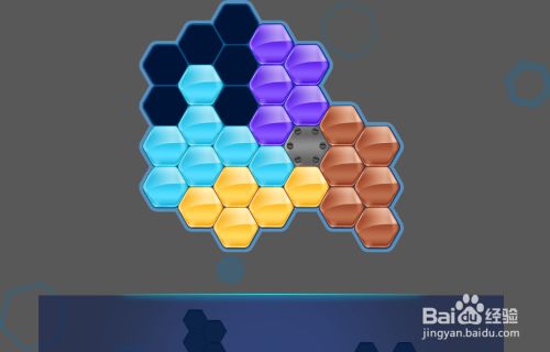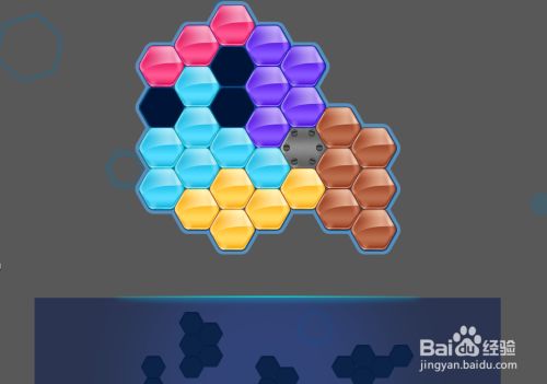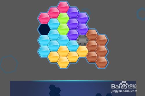 最后在天蓝色六边形拼块的左上侧,放上橙色六边形拼块挨着,如图,这样就顺遂通关了。