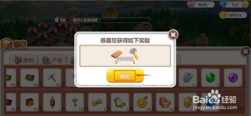 在恭喜您获得如下奖励页面点击确定,就要以领取获得的建筑进级材料。