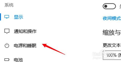 点击窗口左边的电源和睡眠选项。