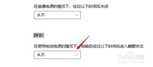 在睡眠设置项下选择从不选项即可。