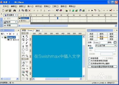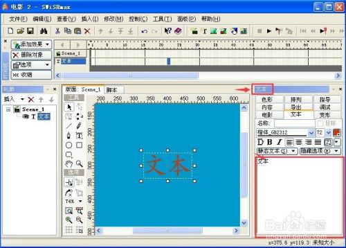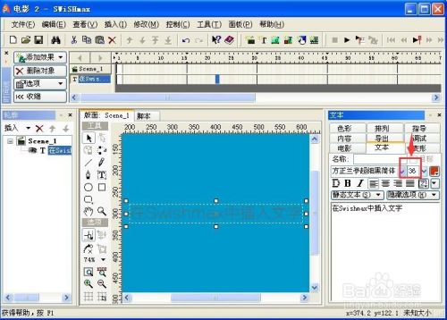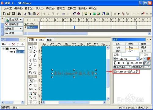 需要的文字就插入到Swishmax软件中了。