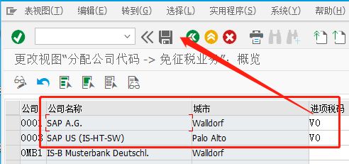 按照公司编码,维护对应的进项税码内容,点击上方‘保留’按钮即可