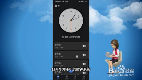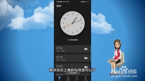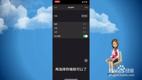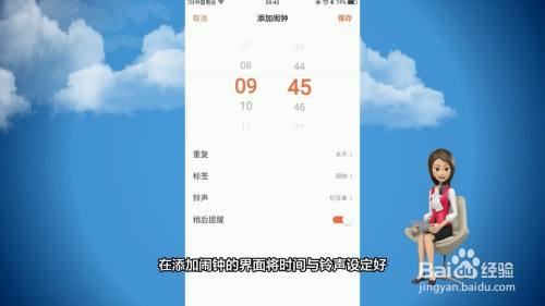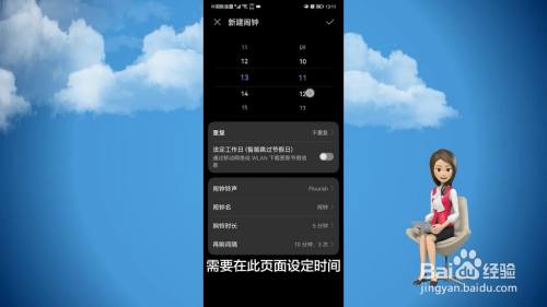 点击后,就会跳转到编纂闹钟的页面,需要在此页面设按时间。