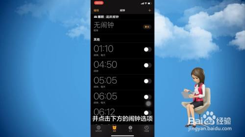进入iphone手机的时钟设置,并点击下方的闹钟选项。