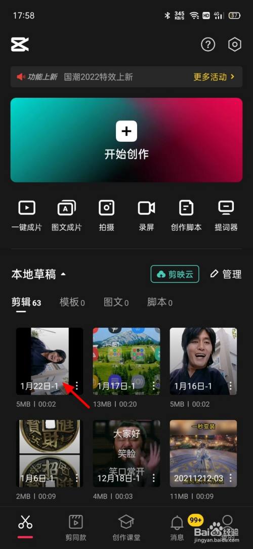 在视频界面,单击剪辑。