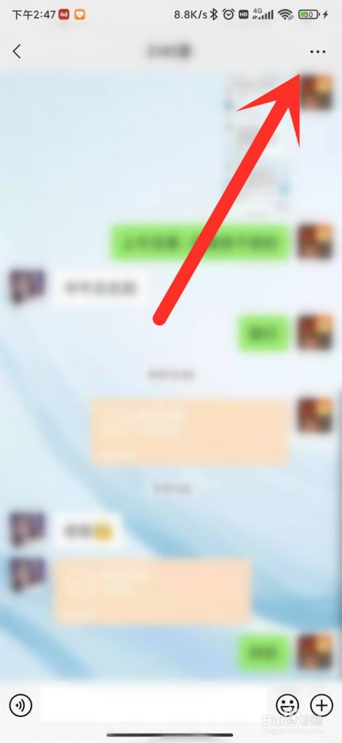 在聊天界面,点击右上角的三个点。