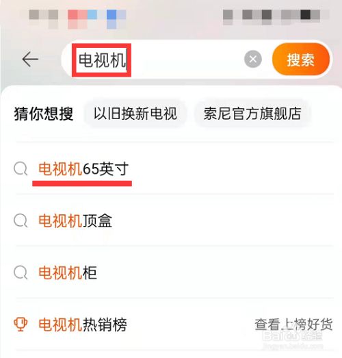 其次在搜索框中输入【电视机】,即可点击匹配到的选项
