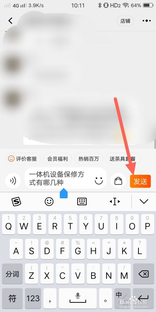 然后在对话框内输入一体机设备保修体例有哪几种点击发送。
