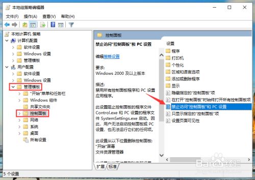 在当地组策略编纂器中,先睁开右侧的“用户设置装备摆设”→“办理模板”,点击“办理模板”下的“节制面板”,双击右侧的“禁止拜候节制面板和PC设置”。