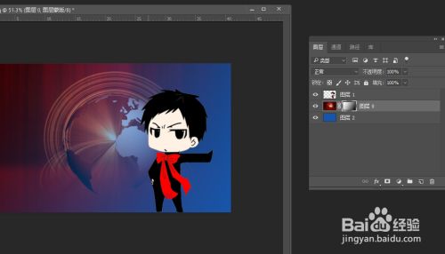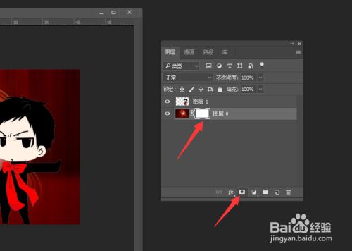 选中此中一个图层后,点击”添加蒙版“按钮,为其添加蒙版。