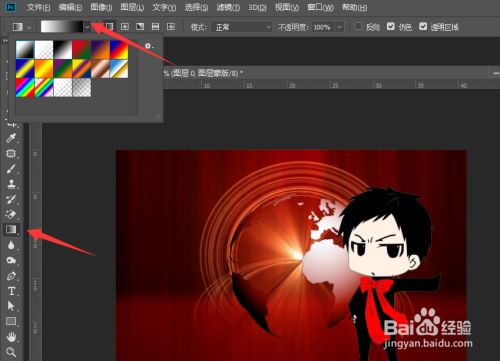 之后,就可以操纵渐变填充东西,操纵口角渐变对图层进行填充。