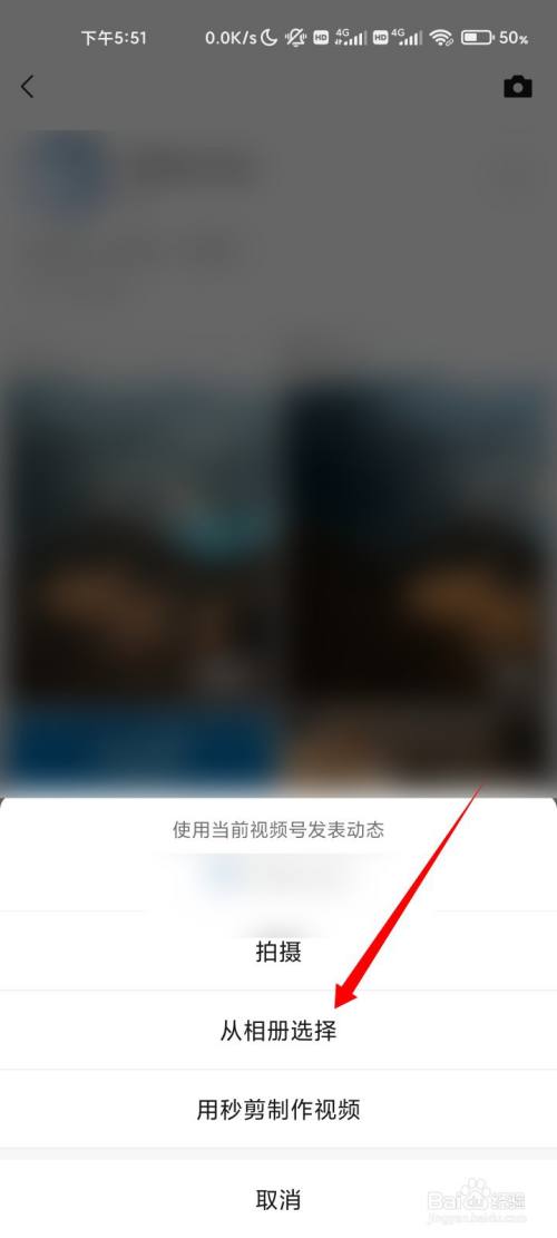 在菜单中,点击从相册选择的选项。