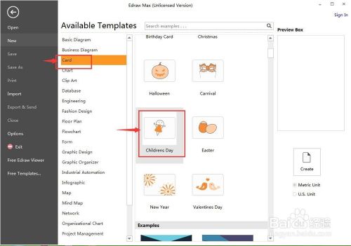 1、打开Edraw Max 2019,在卡片中双击儿童节;