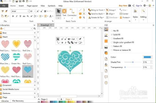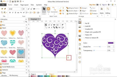沿对角线标的目的外拖动右下角的句柄,将心形变大;