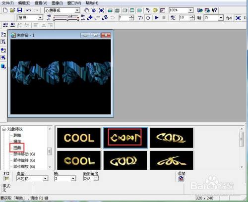 点击对象特效,选择扭曲,添加一种扭曲样式;