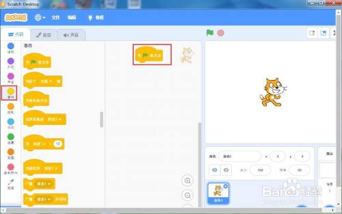 点击事务面板,添加当绿旗号令;
