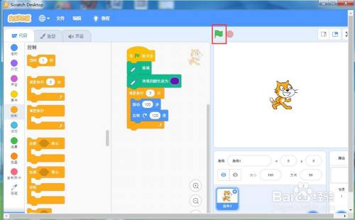 点击绿旗执行程序;