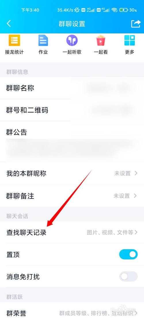 在列表中,点击查找聊天记实的选项。