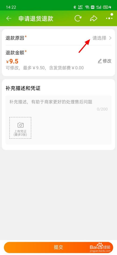 在申请退货退条目页面,点击退条目原因。