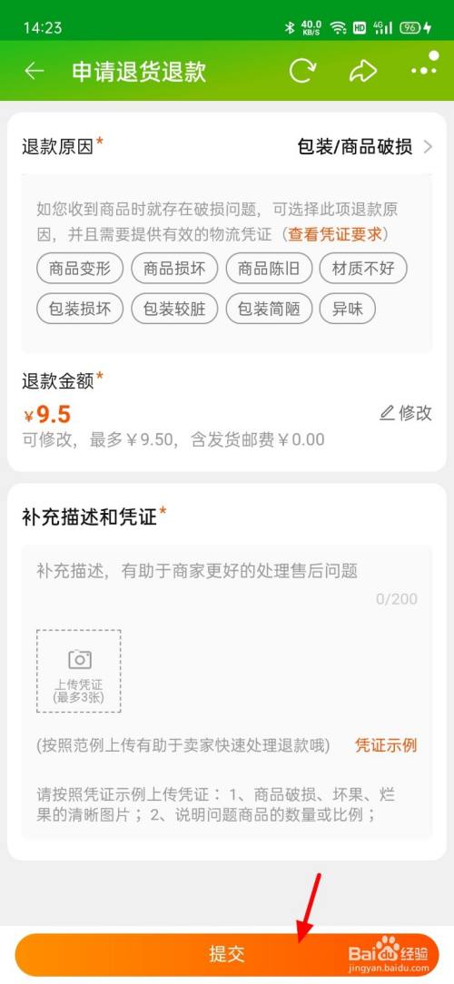 单击提交,这样处置商品破损当作功。