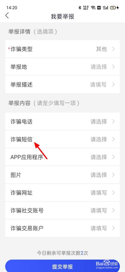 完当作选择,单击诈骗短信。