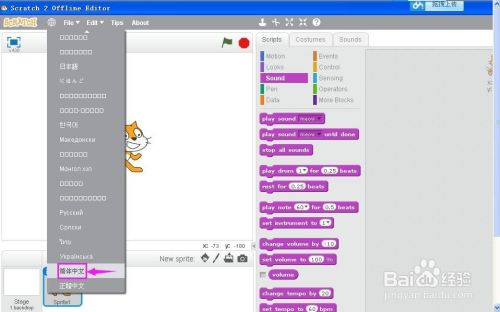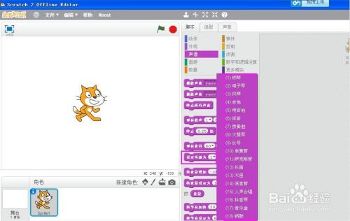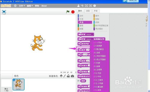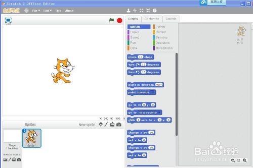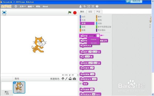 打开scratch2.0,进入工作界面;