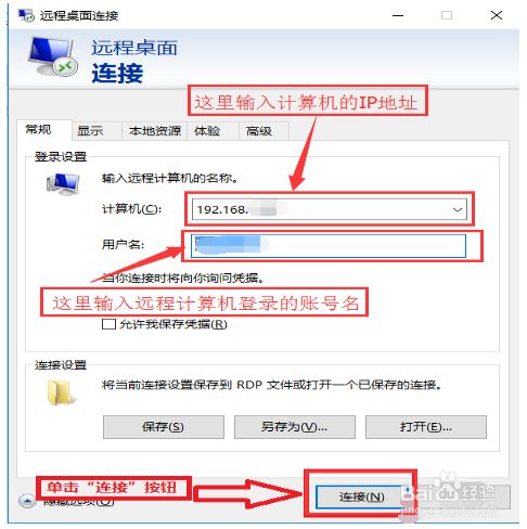 输入长途计较机的IP地址,以及长途计较机的登录用户名。然后点击“毗连”按钮。