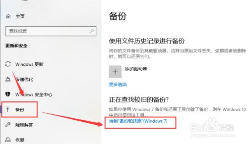 在左侧找到【备份】,选择右侧的【转到“备份和还原”】点击进入