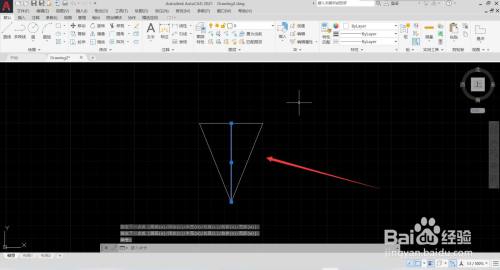 选择直线东西,以程度直线中点为起点标的目的下绘制一段直线。
