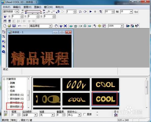 点击对象特效,选择部件倾斜,添加一种倾斜样式;