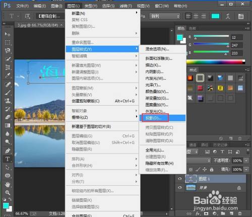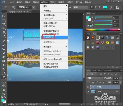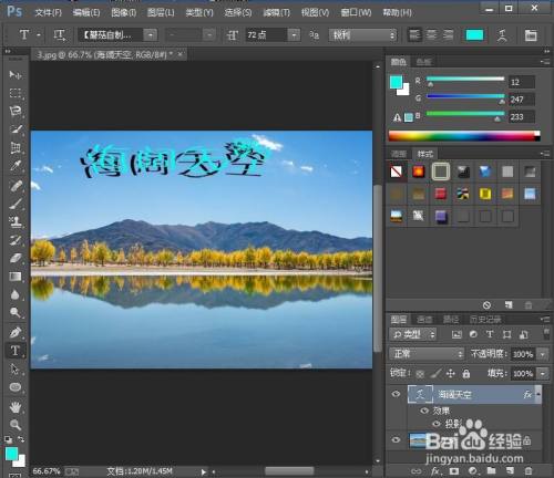 点击文字东西,将文字颜色设为蓝色,输入海洋天空;