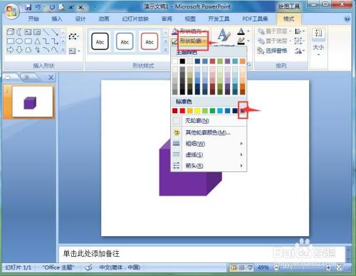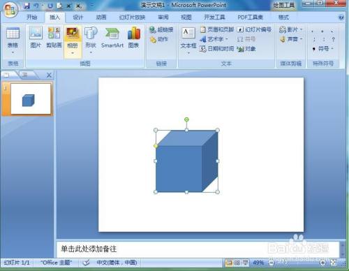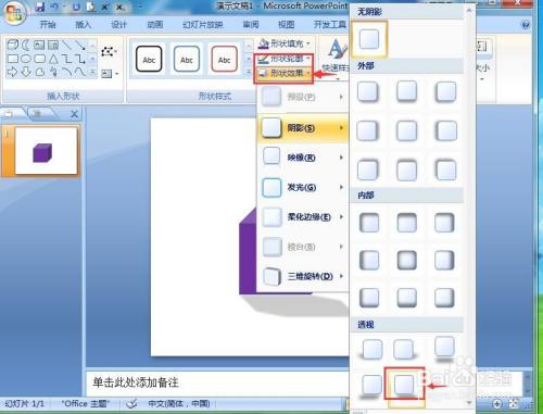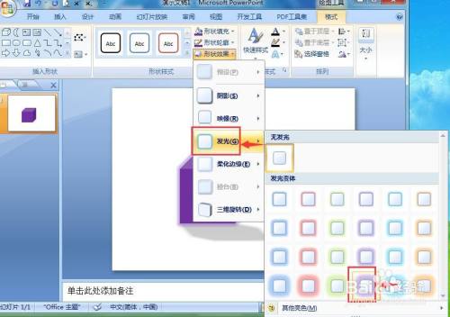 我们就在powerpoint中建立好了一个带暗影的紫色发光正方体。