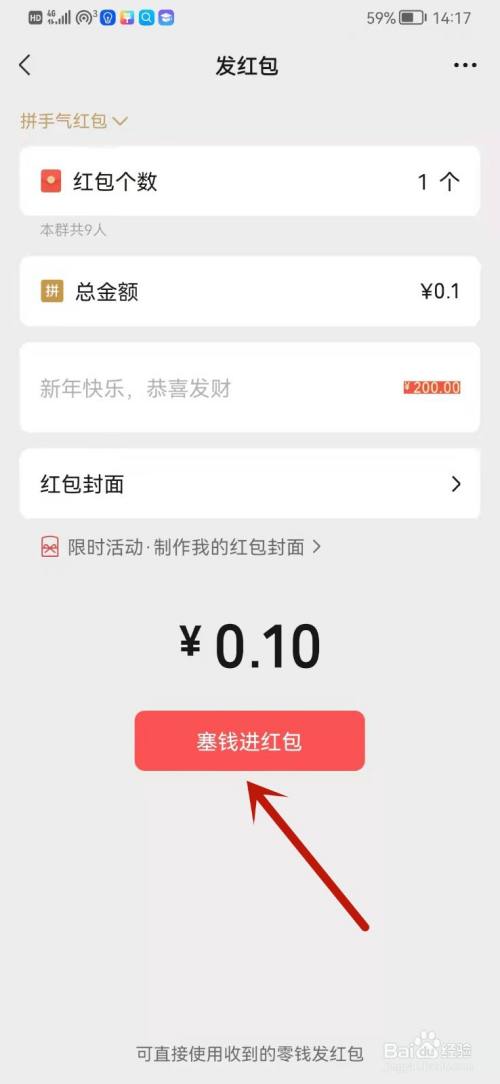 选择200元整蛊脸色,然后点击塞钱进红包。